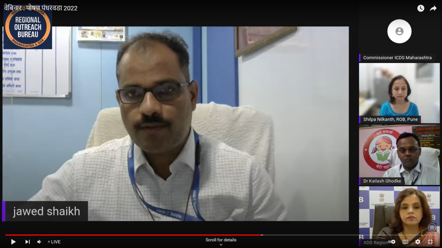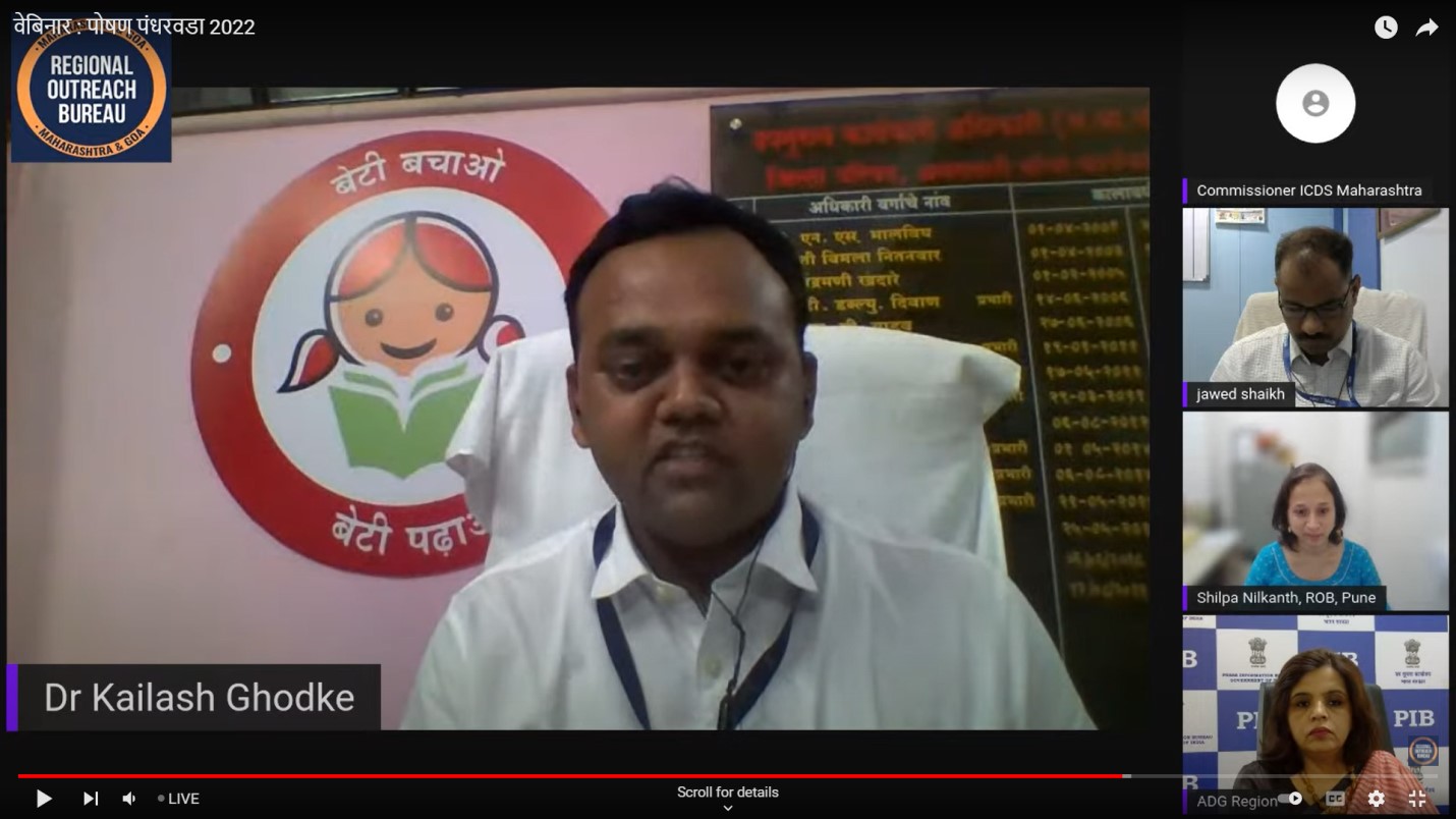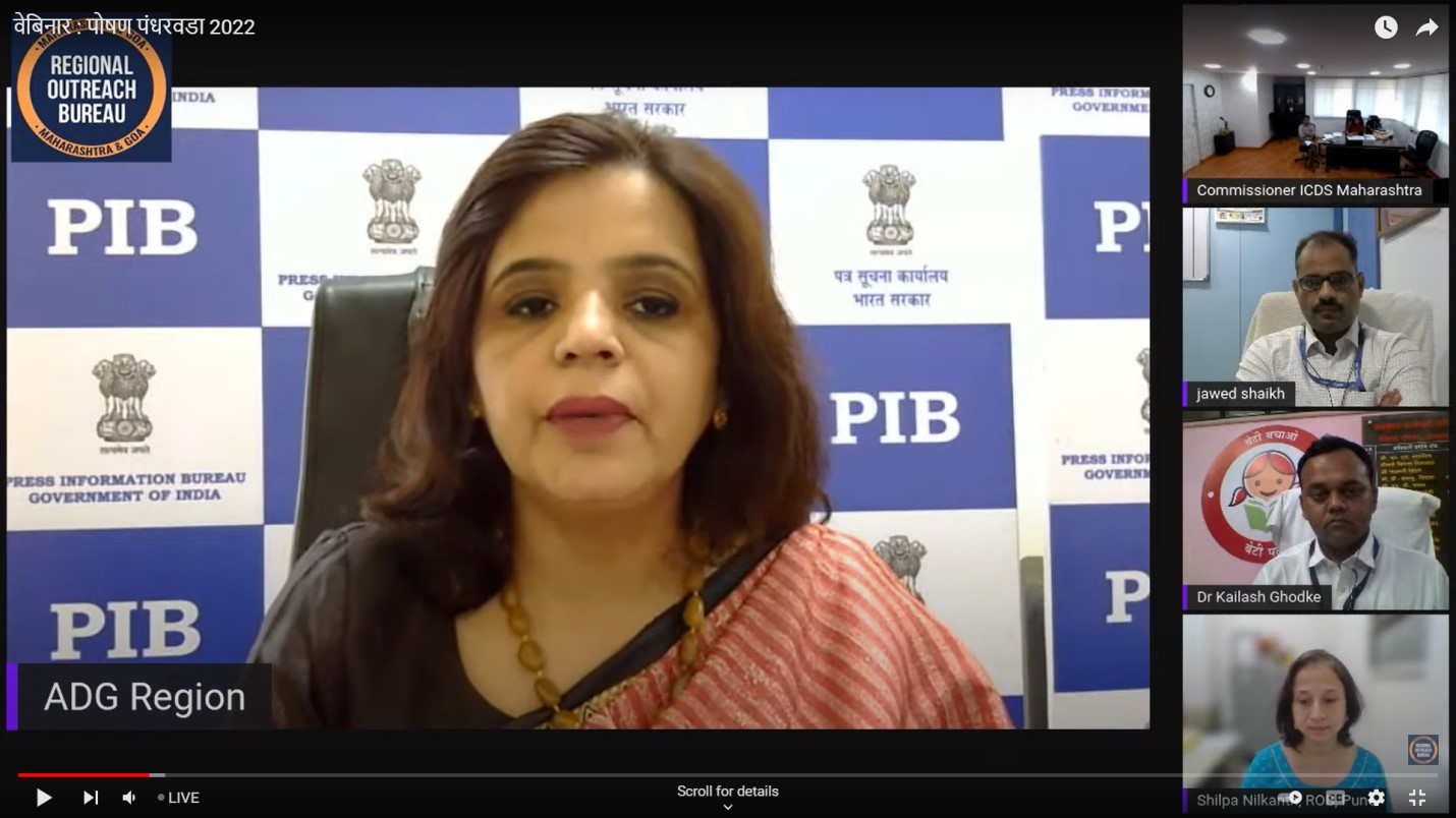 पोषण पंधरवडा 2022 निमित्त प्रादेशिक लोकसंपर्क ब्यूरो, पुणे आणि एकात्मिक बाल विकास सेवा योजना, महाराष्ट्र राज्य यांच्या संयुक्त विद्यमाने आयोजित कुपोषण: आव्हाने व उपाय वेबिनारमध्ये बोलत होत्या.