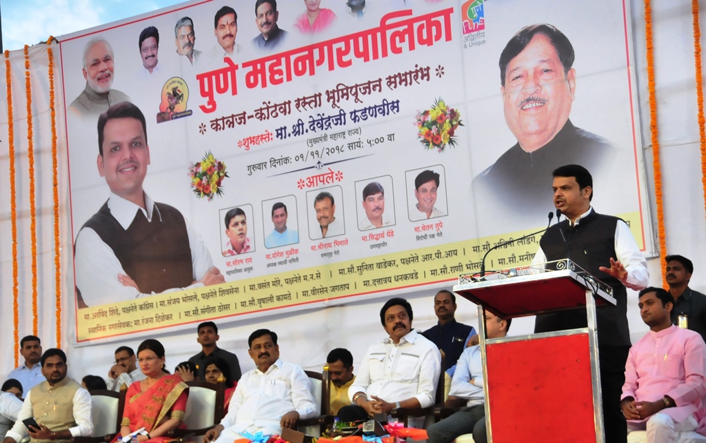 येथील कात्रज-कोंढवा रस्त्याचे भूमिपूजन मुख्यमंत्री देवेंद्र फडणवीस यांच्या हस्ते करण्यात आले. याप्रसंगी आयोजित कार्यक्रमात ते बोलत होते. यावेळी पुणे जिल्ह्याचे पालकमंत्री गिरीश बापट, सहकारमंत्री सुभाष देशमुख, सामाजिक न्याय राज्यमंत्री दिलीप कांबळे, पुण्याच्या महापौर मुक्ता टिळक, खासदार अनिल शिरोळे, आमदार भीमराव तापकीर, आमदार योगेश टिळेकर, आमदार जगदीश मुळीक, आमदार माधुरी मिसाळ, पुणे महानगरपालिकेचे सभागृह नेते श्रीनाथ भिमाले, स्थायी समिती अध्यक्ष योगेश मुळीक, पुणे महानगरपालिका आयुक्त सौरभ राव आदी मान्यवर उपस्थित होते.