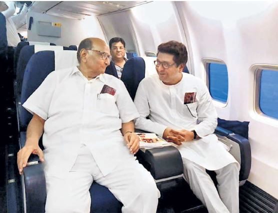पुणे-औरंगाबाद-मुंबई दरम्यानच्या विमानप्रवासातील शरद पवार आणि राज ठाकरेंच्या भेटीने राजकीय वातावरण ढवळून निघाले आहे. शरद पवार आणि राज ठाकरे यांची विमानात भेट झाल्याचा फोटो समोर येताच एकच राजकीय खलबते सुरु झाली पण त्यादिवशी विमानात त्यांच्यात आगामी निवडणुकांविषयी कोणती चर्चा झाली याबाबतचा तपशील अगर मुद्दे समोर आलेले नाहीत .गेल्या निवडणुकीत नरेंद्र मोदी यांच्या जादुई हवेने ,सर्व राजकीय पक्षांची धूळधाण उडवून भाजपला ऐतिहासिक विजय मिळवून दिला . आता येणाऱ्या निवडणुकीच्या पार्श्वभूमीवरच ..गेल्या वर्षाहून अधिक कालावधी पासून अर्थात शरद पवारांच्या या साऱ्या हालचाली सुरु असल्याचे सांगायला नको .पवार प्रसंगी शिवसेनेशी ,मनसे शी युती करू शकतात हे सारे सांगतील . जे पवार भाजपला राज्यात सत्तेवर बसविण्यासाठी मदतीला जाऊ शकतात ते राजकारणात कोणाशीही प्रसंगी युती आघाडी करू शकतात. पण या साऱ्या गोष्टी प्रसंगी च होतात . सध्या तरी त्यांची राजकीय हवामान घडविणे ,चाचपणी करणे, विरोधकांना संभ्रमात, बुचकळ्यात टाकून ठेवणे अशा पद्धतीचे राजकारण सुरु असावे असे म्हरले जाते. एकीकडे भुजबळांना बाहेर काढल्यानंतर पुण्याचे दीपक मानकर चक्क मोका खाली आत जाणे हि बाब हि राजकीय मानली जाते . एकीकडे भाजप सत्तेवर असला तरी पवारांना थेट शह न देता ,त्यांचे बळ कसे कमी करता येईल हे पाहत असावा असे राजकीय समीक्षकांना वाटत असताना दुसरीकडे पवार देखील भाजपच्या विरोधात जमवा जमव करत आहेत असे दिसते आहे .याच पार्श्वभूमीवर विमान प्रवासातील भेटीची प्रसिद्धी करायची पण तेथील चर्चेची गुप्तगू ‘गोपनीय ‘ ठेवली जात असावी असा कयास आहे .