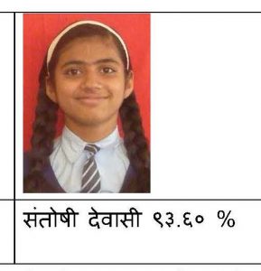 संतोषी देवासी हिने 93.60 टक्क्यांसह दुसरा; तर श्वेता मुंढे हिने 92.60 टक्क्यांसह तिसरा क्रमांक पटकावला. पुरब खोपडे 92.20 टक्के, गुलनाज शेख 91.80 टक्के, प्रगती चव्हाण 90.80 टक्के मिळवून या विद्यार्थ्यांनी उत्तम यश संपादन केले.