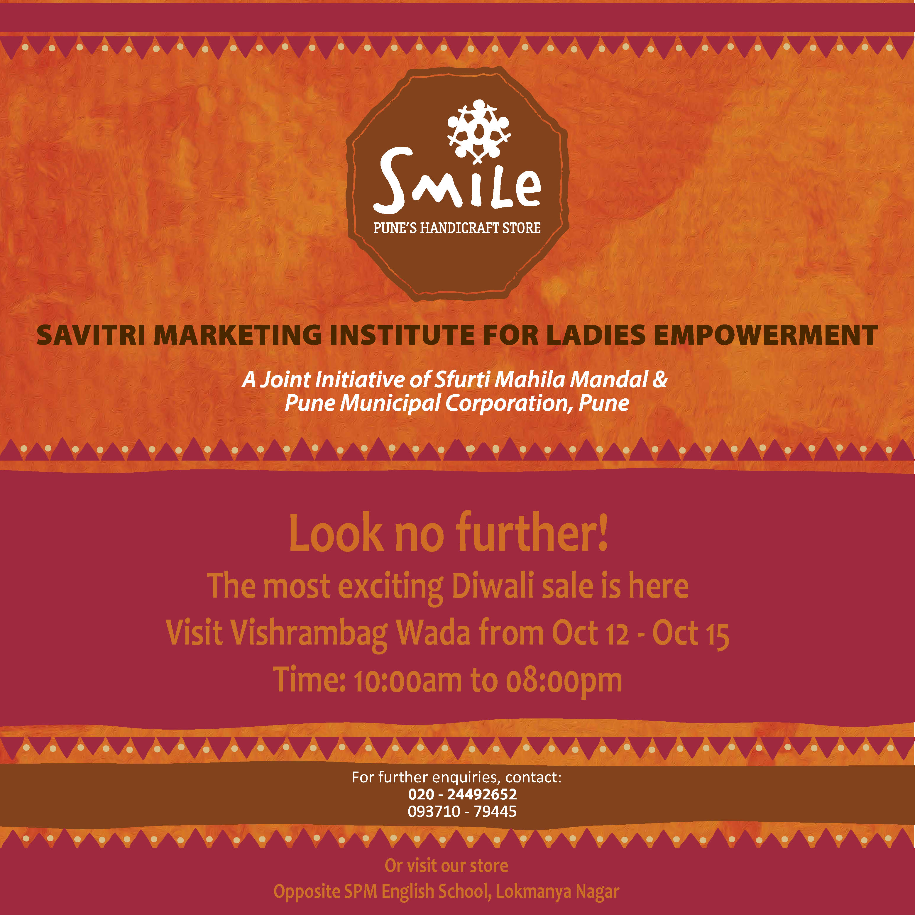 ‘उद्योजक महिलांच्या सुप्त कलेला योग्य वाट देण्याकरीता, महिलांचे सक्षमीकरण तसेच त्यांना रोजगार मिळवून देण्यासाठी हक्काचे विक्री केंद्र असलेल्या ‘स्माईल’ (सावित्री मार्केटिंग इन्स्टिट्यूट फॉर लेडिज एम्पावरमेंट) या स्वयंसेवी संस्थेच्या वतीने आयोजित दिवाळी प्रदर्शन महिलांसाठी उपयुक्त ठरेल.