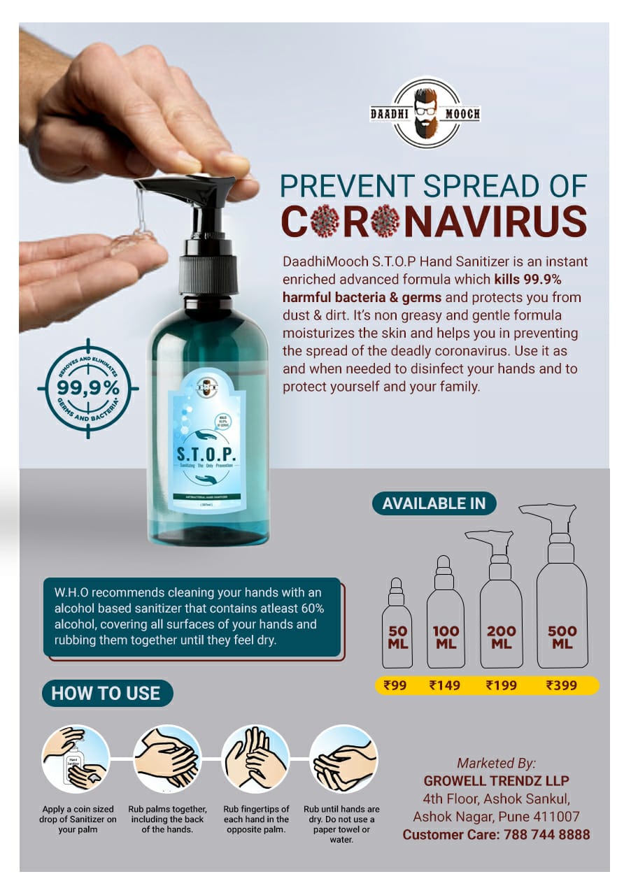 जागतिक आरोग्य संघटनेच्या मार्गदर्शक सूचनांप्रमाणे साथींचा संसर्ग टाळण्यासाठी हात धुणे, सॅनिटायझरचा वापर करणे, ही आरोग्यदायी सवय आहे. त्यातही ६० टक्के अल्कोहोल बेस वापरून तयार केलेले सॅनिटायझर हे प्रभावी ठरतात. हे सॅनिटायझर हातावर चोळल्यास ते साबणापेक्षा अधिक जागेपर्यंत पोहोचून स्वच्छता करते आणि तो भाग निर्जंतुक करते. कोरोना चे रुग्ण भारतात ,पुण्यात सापडल्यापासून नागरिकांमध्ये चिंतेचे वातावरण आहे . काळजीपोटी मास्क घेऊन ठेवण्याचे प्रमाण वाढले आहे. तसेच हात धुण्यासाठी सॅनिटायझरबाबत जागरूकता आणि वापर वाढला आहे’,असे तरुण अहुजा यांनी सांगितले.