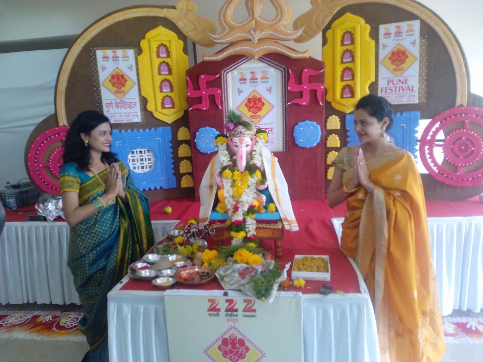 ‘पुणे फेस्टिव्हल ‘ चे संस्थापक ,अध्यक्ष सुरेश कलमाडी ,अभिनेत्री भार्गवी चिरमुले ,अनुजा साठे यांच्या हस्ते आरती करण्यात आली . अनिकेत पत्की गुरुजी यांनी विधिवत पूजा सांगितली .