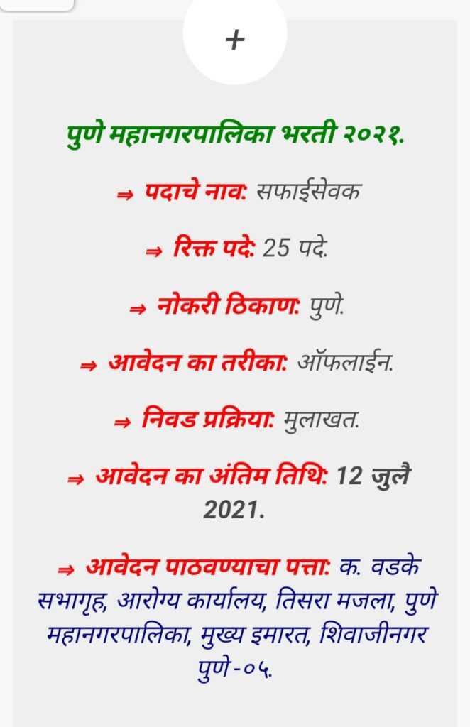pune mahanagarpalika recruitment 2021 openings sweepers posts