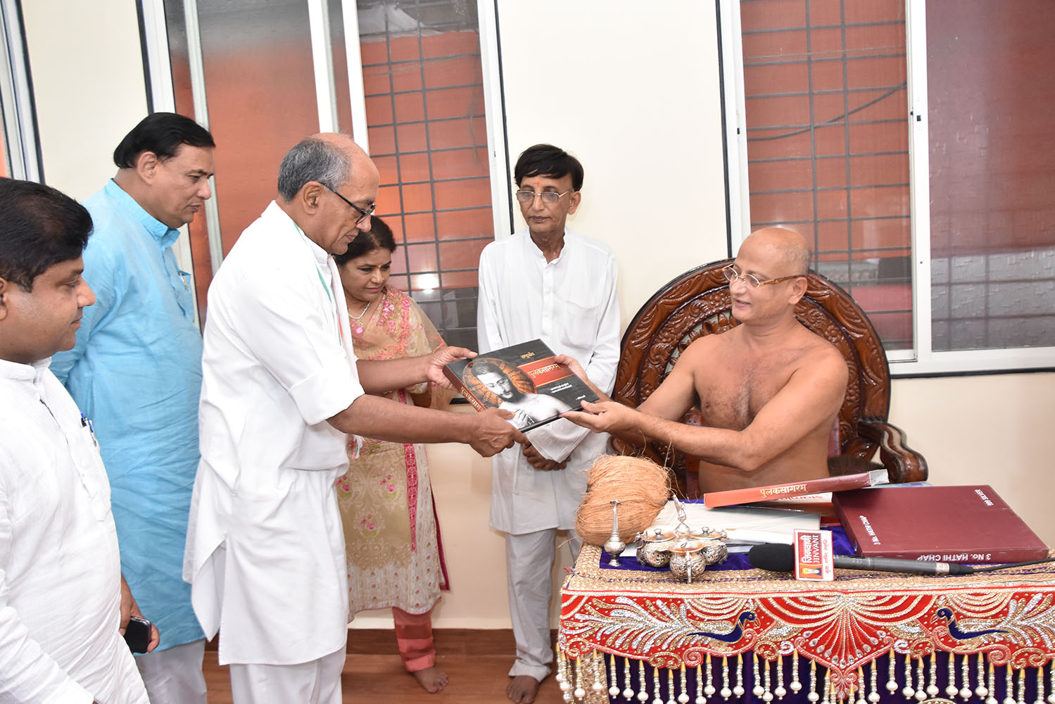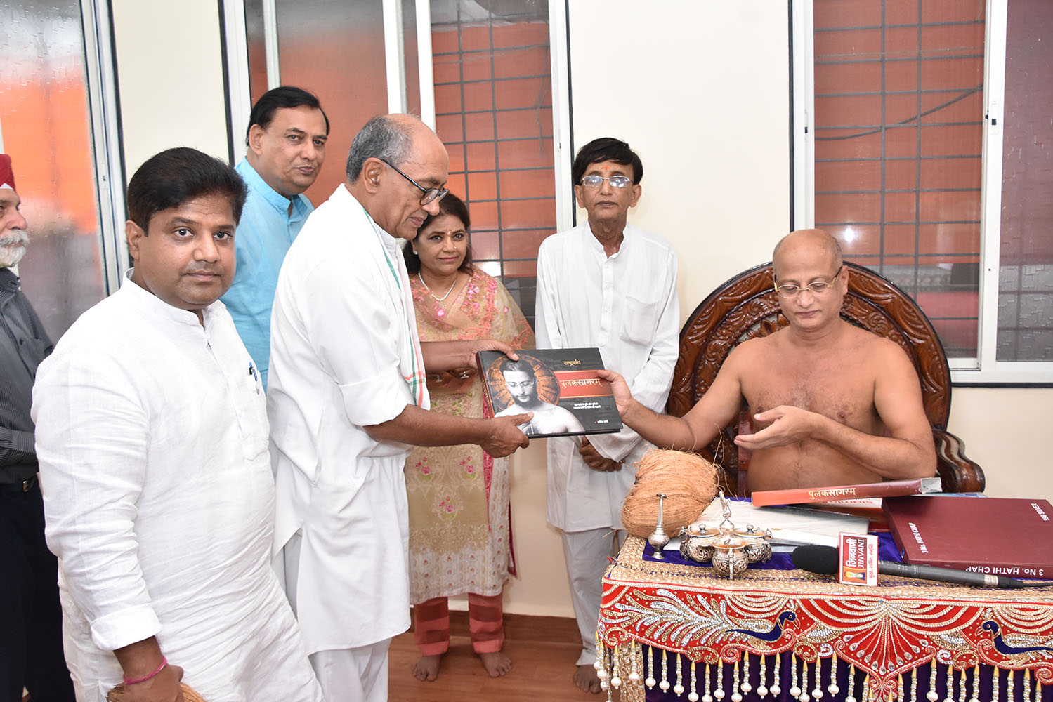 पुलकसागरजी महाराज यांनी दिग्विजयसिंग यांना आशीर्वाद स्वरुपात’पुलकसागरम्’पुस्तके भेट दिली.