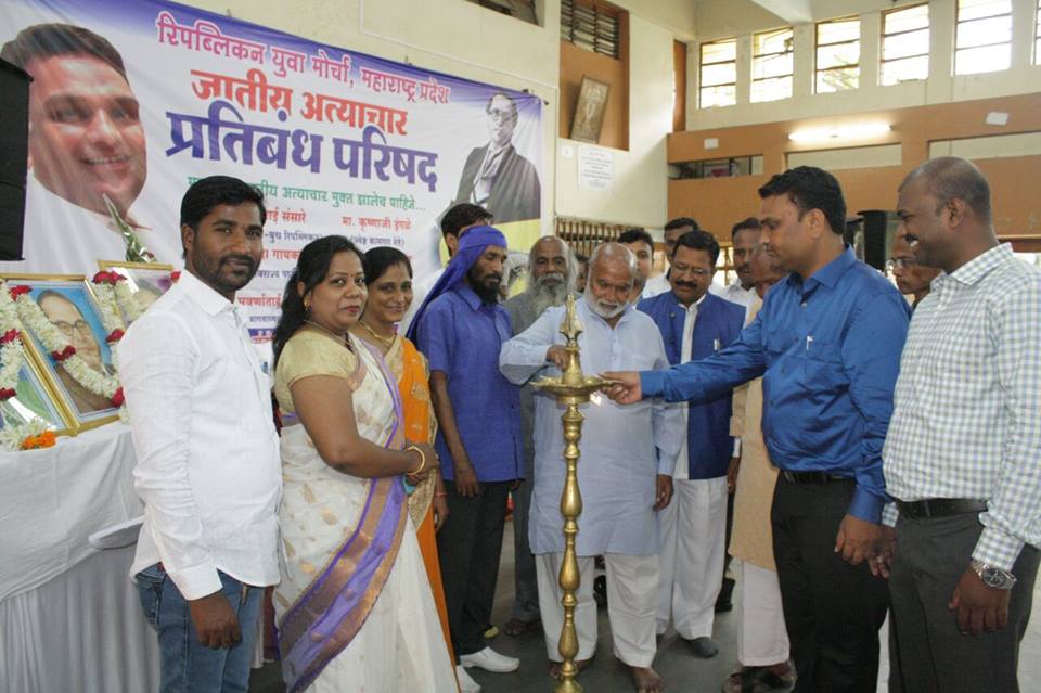 पुणे- तंटामुक्त अभियान राबविले … स्वच्छता अभियान राबविले … आता जातीय अत्याचार मुक्त गाव -शहर असे अभियान राबवा अशी मागणी आज येथे रिपब्लिकन युवा मोर्चाचे राहुल डंबाळे आणि आज येथे झालेल्या जातीय अत्याचार प्रतिबंध परिषदेच्या स्वागताध्यक्षा सुवर्णा डंबाळे यांनी पुन्हा एकदा केली … सोमवार पेठेतील गाडगेमहाराज धर्मशाळेत झालेल्या या परिषदेस ज्येष्ठ कामगार नेते कृष्णाजी इंगळे तसेच भाई विवेक चव्हाण आणि दलित समाजातील असंख्य मान्यवर कार्यकर्ते उपस्थित होते .. पाहू यात यावेळी डंबाळे नेमके काय म्हणाले ….