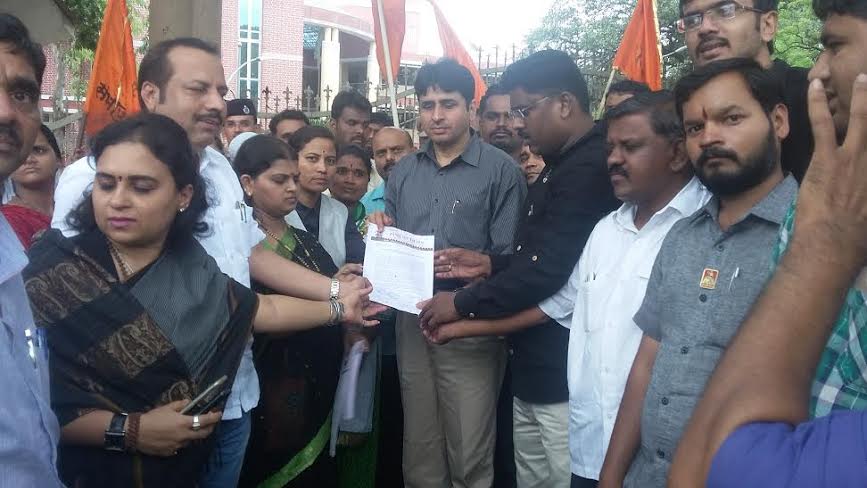 पुणे- अहमदनगर जिल्ह्यातील बालिकेवर झालेला सामूहिक बलात्कार आणि हत्या प्रकरणावरून संभाजी ब्रिगेड पुणे जिल्ह्याच्यावतीने पुणे जिल्हाधिकारी कार्यालयावर मोर्चा काढून आंदोलन करण्यात आले .यावेळी निवासी उपजिल्हाधिकारी मुठे यांना मागण्याचे निवेदन देण्यात आले . माणुसकीला काळिमा फासणारी घटना आहे . पीडित मुलीचे कुटुंब अंत्यत दहशतीखाली आहे . गुन्हेगारांना कडक शिक्षा झाली पाहिजे .