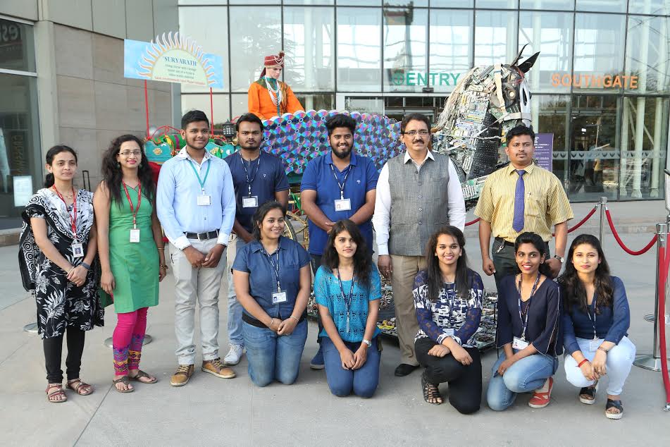 या कलाकृतीमधील रथ याआधी गोविंदाच्या एका लोकप्रिय चित्रपटाच्या डेक्कन जिमखान्याजवळील नदीकाठावर झालेल्या चित्रीकरणात वापरण्यात आला होता. ‘सूर्यदत्ता इन्स्टिट्यूट ऑफ फॅशन डिझाईन’च्या विद्यार्थ्यांनी केवळ २४ तासांत त्याची दुरुस्ती, नूतनीकरण व सजावट केली आणि पुतळ्याच्या पेहरावांचीही आकर्षक रचना साकारली. या अभिनव संकल्पनेमागील हेतू म्हणजे फेरप्रक्रिया केलेल्या उत्पादनांना उत्तेजन देण्याबाबत लोकप्रबोधन घडवणे आणि फेरप्रक्रिया, फेरवापर व वापर कमी करणे (रीसायकल, रीयूज, रीड्युस) या तत्त्वाचे महत्त्व व गरज ठसवणे.
