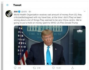 मात्र एकाच मिनिटानंतर त्यांनी आपल्या वक्तव्यावरून पलटी मारली. ट्रम्प यांनी मार्चमध्येही दावा केला होता की, कोरोनावर चीनबद्दल डब्ल्यूएचओचे वर्तन पक्षपाती आहे. त्यामुळे अनेक लोकांना चांगले वाटत नाहीये.