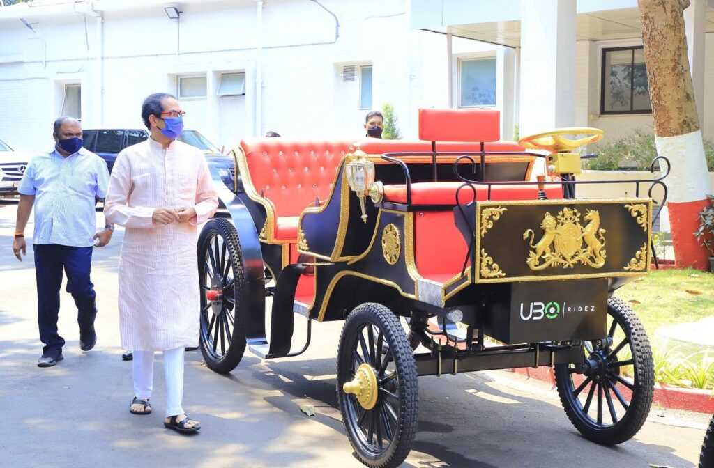 मुंबई दि. 14 : मुख्यमंत्री उद्धव ठाकरे यांच्या हस्ते मुंबईत पर्यटकांसाठीच्या इलेक्ट्रिक व्हिक्टोरिया बग्गींचे अनावरण वर्षा शासकीय निवासस्थानी करण्यात आले. यावेळी पर्यटनमंत्री आदित्य ठाकरे, परिवहनमंत्री अॅड. अनिल परब आदी उपस्थित होते.