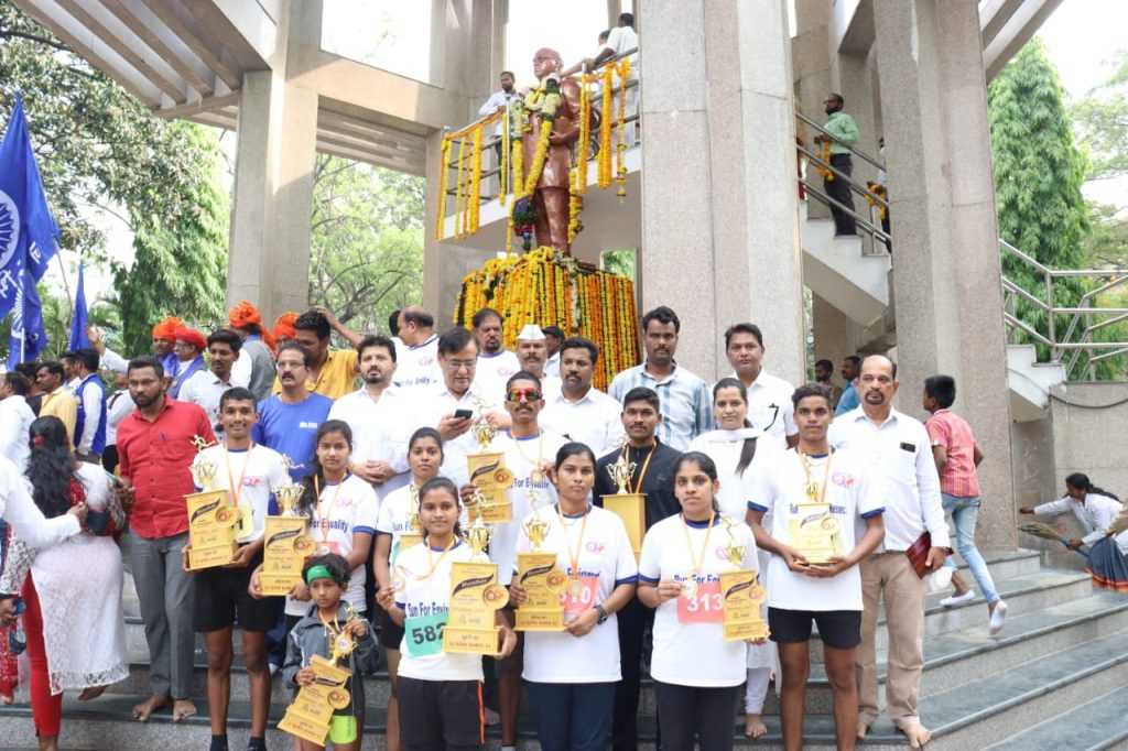 पुणे : डॉ. आंबेडकर यांचे विचार समाजातील सर्व घटकापर्यंत पोहचवण्यासाठी तसेच सामाजिक एकता आणि समानतेचा संदेश देणार्या मॅरेथॉनच्या धर्तीवर आधारित भिमथॉन स्पर्धेतील पुरुष गटात पहिला येण्याचा मान विकास पोळ यांनी पटकावला. द्वितीय क्रमांक सुनील कांबळे व तृतिय क्रमांक आदित्य गाडवे यांना मिळाला. १८ वर्षाखालील गटात सुयोग अडसूळ, संदीप यादव आणि आदित्य पायाळ विजयी ठरले. महिला खुल्या गटात साधना झोरे ,पल्लवी सोनवणे व दिपाली मारणे विजयी ठरल्या. १८ वर्षाखालील युवती गटात भावना शिळीमकर काव्या देशमुख आणि दीप्ती कदम यांनी विजयाचा मान पटकावला.