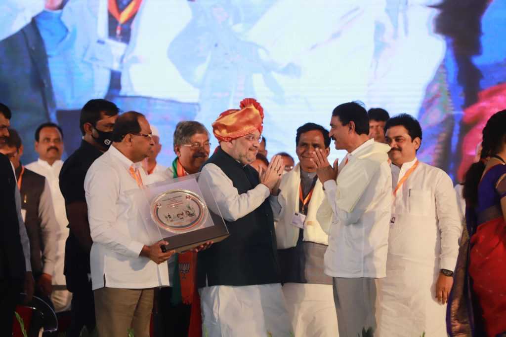 यावेळी उपस्थितांशी संवाद साधताना ते म्हणाले की, ज्या भूमीवरून छत्रपती शिवाजी महाराज यांनी संपूर्ण देशात स्वातंत्र्याचा जयघोष गाजवला आणि हिंदवी स्वराज्याची स्थापना केली त्याच पवित्र भूमीवर मी आज तुमच्यासमोर उपस्थित आहे, म्हणून आजचा दिवस माझ्यासाठी अत्यंत आनंददायी दिवस आहे.या देशाला जेव्हा भक्तिमार्गाच्या उपदेशाची सर्वात जास्त गरज होती त्याच वेळी भक्तीची चळवळ सुरु करणाऱ्या संत ज्ञानेश्वर महाराजांची देखील हीच भूमी आहे असे ते पुढे म्हणाले. त्यांनी सांगितले की संपूर्ण जगाला श्रद्धा आणि संयमाची शिकवण देणाऱ्या साईबाबांची ही भूमी आहे.ते म्हणाले की आजच्या सरकारात पंतप्रधान नरेंद्र मोदी यांनी सहकार मंत्रालय निर्माण केले. देशाला स्वातंत्र्य मिळून 75 वर्षे झाली तरी याबाबत कोणी विचार देखील केला नव्हता अशी टीका त्यांनी केली. देशाच्या स्वातंत्र्यप्राप्तीनंतर 75 वर्षांनी पंतप्रधान नरेंद्र मोदी यांनी स्वातंत्र्याच्या अमृतमहोत्सवी वर्षात सहकार मंत्रालय स्थापन केले कारण त्यांना माहित आहे की सहकार हा विषय आजही तितकाच समयोचित आहे आणि सबका साथ, सबका विकास हा मंत्र केवळ सहकारी तत्वावर काम केल्यानेच यशस्वी होऊ शकतो.ते म्हणाले की जेव्हा सहकार मंत्रालयाची स्थापना झाली तेव्हा अनेक लोकांनी विचारले की याची उपयुक्तता काय आहे, पंतप्रधान मोदी हे काय करत आहेत, देशाला कुठे घेऊन चालले आहेत.त्या सर्वांच्या प्रश्नांची उत्तरे देण्यासाठी मी आज येथे आलो आहे असे सांगून केंद्रीय मंत्री शाह म्हणाले की, आज देशातील एकूण साखर उत्पादनापैकी 31% साखरेचे उत्पादन सहकारी साखर कारखान्यांमध्ये होते, तसेच दुधाच्या एकूण उत्पादनापैकी 20% उत्पादन सहकारी तत्वावर चालणाऱ्या संस्था करतात. एकूण उत्पादित गव्हापैकी 13% गहू आणि तांदळाच्या एकूण उत्पादनापैकी 20% तांदूळ यांची खरेदी सहकारी संस्थांतर्फे केली जाते, याशिवाय, देशातील 25% खतांची निर्मिती, उत्पादन आणि वितरण सहकारी संस्थांच्या माध्यमातूनच होते हे सर्वांनी लक्षात घेतले पाहिजे असे आग्रही प्रतिपादन केंद्रीय मंत्री शाह यांनी केले. “भारतीय शेतकरी खत सहकारी संस्था आणि कृषक भारती सहकारी संस्था या अशा सहकारी संस्था आहेत, ज्यांचा जगभरात अभ्यास केला जातो, लिज्जत पापड संस्थेचा अभ्यास करण्यासाठी जगभरातून महिलांच्या संस्था येतात , अमूल ही अशी एक सहकारी संस्था आहे जी दररोज सकाळ संध्याकाळ 36 लाख भगिनींना पैसे देण्याचे काम करते, हे सहकाराचे यश आहे,असे श्री शाह म्हणाले. आपल्याकडे उत्पादन करण्याची, कारखाना उभारण्याची, कारखाना चालवण्याची आणि विपणन करण्याची फारच कमी आर्थिक क्षमता असेलही कदाचित परंतु आपल्याकडील संख्या मोठी आहे.सहकारातून आपण सगळे 