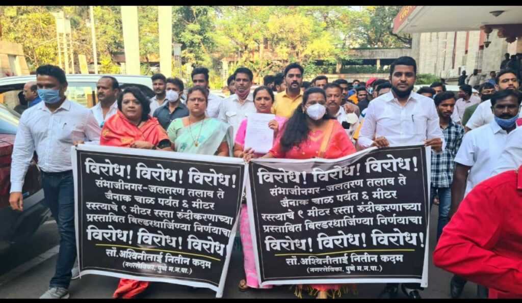 नुकतेच स्थायी समितीने शहरातील सहा मीटर रुंदीचे रस्ते नऊ मीटर करण्याचा प्रस्ताव मंजुर केला आहे. या निर्णयाला विराेध वाढू लागला आहे. रस्ता रुंदीकरणासाठी महापािलका प्रशासनाने नाेटीस बजाविण्यास सुरवात केल्यानंतर रहीवाश्यांमध्ये भिती निर्माण झाली आहे. रस्त्यालगत राहणाऱ्या रहीवाश्यांना त्यांची जागा जाणार, घराबवर बुलडाेझर फिरविला जाणार याची चिंता सतावू लागली आहे. यातूनच सहकारनगर भागातील नगरसेिवका अश्विनी कदम यांनी सुमारे पावणे सहाशे रहीवाश्यांच्या हरकती महापािलका प्रशासनाला सादर केल्या आहेत. यावेळी विरोधी पक्षनेत्या दिपाली धुमाळ,पर्वती अध्यक्ष नितीन कदम, नगरसेविका प्रिया गदादे,दिलीप अरूंदेकर, अण्णा तळेकर,अनिल सातपुते, तुषार नांदे,सुशांत ढमढेरे,प्रेम गदादे, समीर पवार,डॉ.सुनिता मोरे, दिनेश खराडे, पराग थोपटे,दिगंबर कोबल,अभिजीत उंद्रे ,संग्राम वाडकर, सचिन जमदाडे, संजय दामोदरे, आदित्य उढाने, वीरेन जेधे,साईल चिकणे, तेजस मिसाळ आदी पदाधिकारी,कार्यकर्ते मोठ्या संख्येने उपस्थित हाेते.
