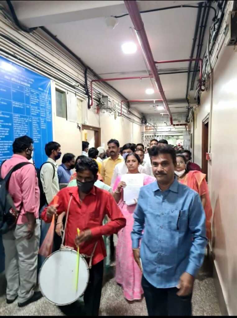महापािलकेतील विराेधी पक्षनेत्या दिपाली धुमाळ यांच्या उपस्थितीत नगर अभियंता प्रशांत वाघमारे यांना निवेदन देण्यात आले. तत्पुर्वी महापािलकेच्या आवारातील महात्मा ज्याेतिबा फुले यांच्या पुतळ्यापासून राष्ट्रवादी काॅंग्रेसचे पदाधिकारी हे ताशा वाजवित इमारतीत घुसले. त्यांना सुरक्षा रक्षकांनी अडविण्याचा प्रयत्न केला. परंतु, नगरसेविका अश्विनी कदम यांनी सुरक्षारक्षकांना आम्हाला जाऊ द्या असे बजावित, वाघमारे यांचे कार्यालय गाठले. याप्रकरणी सुनावणी घेऊन याेग्य ताे निर्णय घेतला जाईल असे आश्वासन वाघमारे यांनी उपस्थितांना दिले.